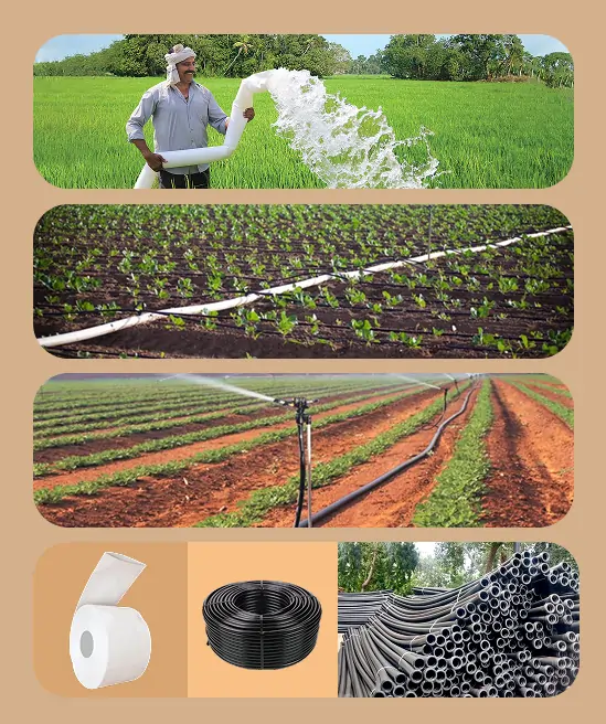 As pioneers in the industry, we specialize in HDPE Lapeta Pipes, Drip Irrigation Kits, Sprinkler Irrigation Systems, Agricultural Pipes, and Farm Machinery Accessories. Our products are designed to maximize crop yield, save water, and reduce farming costs, making agriculture more profitable and future-ready.